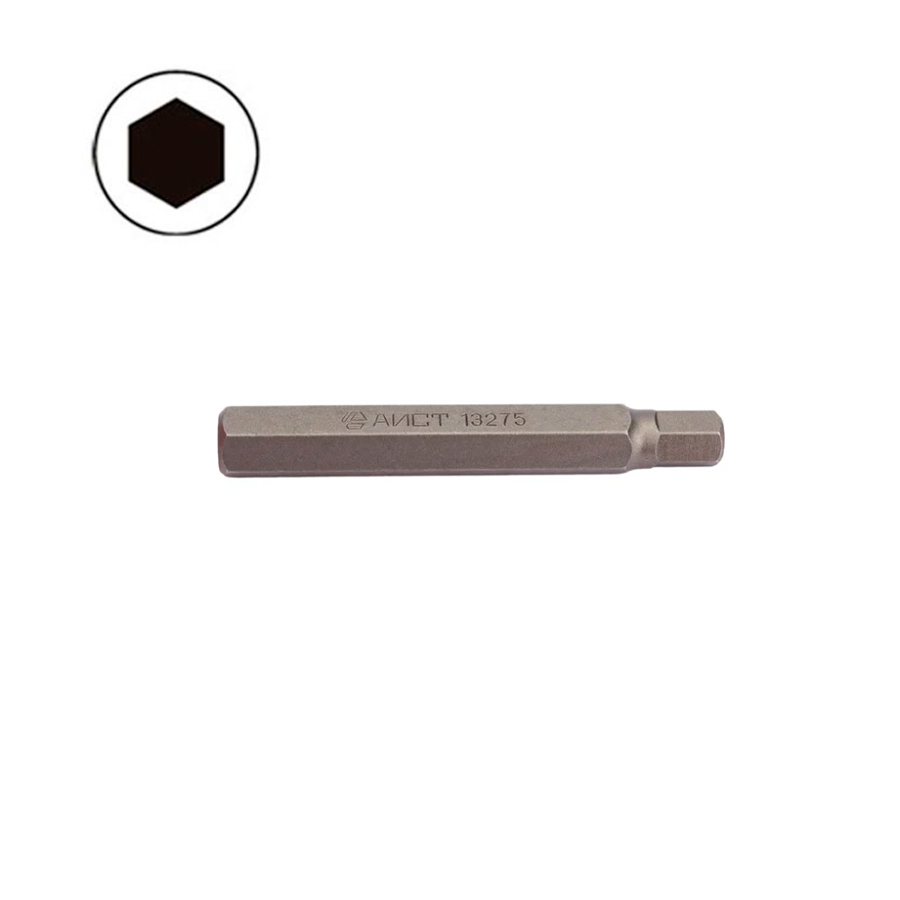 Длинная бита шестигранная 8 мм изготовлена из стали S2 (Cr-Ni-Mo). Длинная бита HEX H8 имеет посадку под внутренний шестигранный привод (HEX) размером 10мм. Длина бита 75мм. Длинная силовая ударная бита для ручного и механизированного инструмента. Например, может использоваться для ударной отвертки с держателем бита на 10мм.