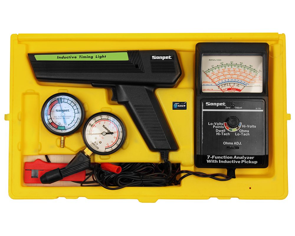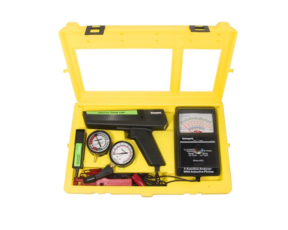 Набор из нескольких диагностических приборов. Используется для обслуживания системы зажигания, установки УОЗ, измерения компрессии, тестирования топливного насоса, турбонаддува и т.д В наборе имеется 7-ми функциональная диагностическая система.