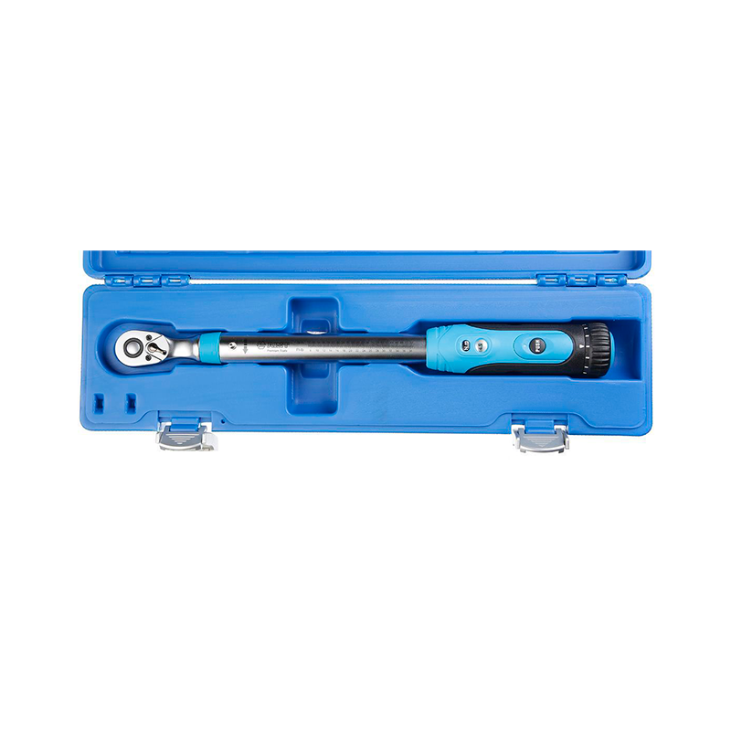 Профессиональный динамометрический ключ 10-50 Нм имеет средний присоединительный квадрат 3/8 дюйма. Щелчковый предельный ключ имеет круговую шкалу и трещеточный механизм на 48 зубов. Моментный ключ поставляется вместе с пластиковым кейсом для удобного хранения. Имеет четкую шкалу для выставления крутящего момента. Шкала с ценой деления (шагом) в 0,5 Н/м позволит выставить необходимый крутящий момент. Отчетливо слышен щелчок при достижении усилия. Рукоять исключает проскальзывание динамометрического ключа 3/8" 10-60 Нм в руке. Кнопка сброса позволяет быстро менять торцевые головки.