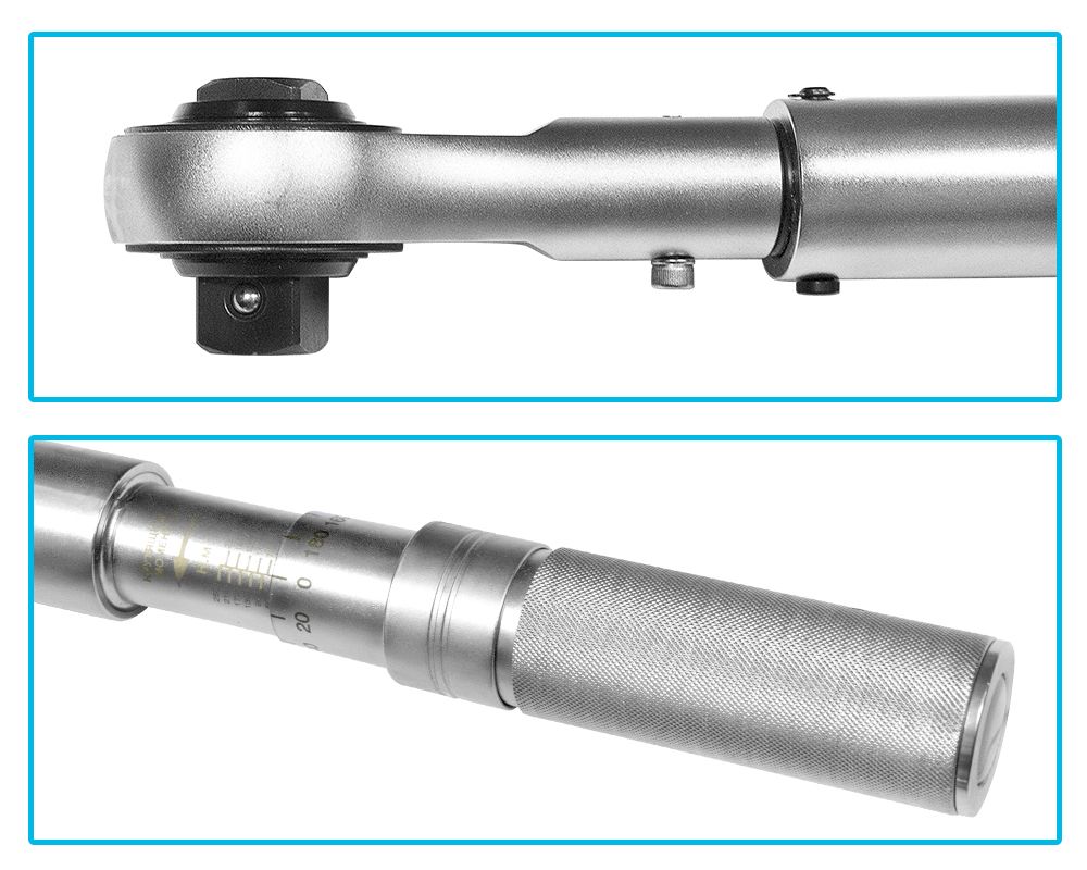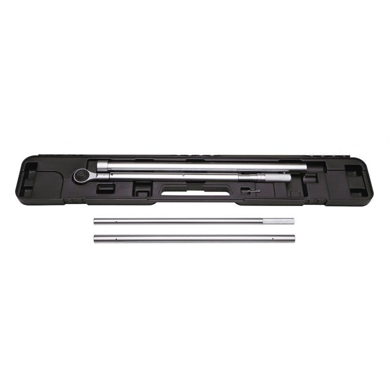 Профессиональный динамометрический ключ 500-2500 Нм имеет большой присоединительный квадрат 1 дюйм. Щелчковый предельный ключ имеет круговую шкалу и трещеточный механизм на 24 зубца. Моментный ключ поставляется вместе с пластиковым кейсом для удобного хранения. Имеет четкую шкалу для выставления крутящего момента. Круговая шкала с ценой деления (шагом) в 20 Н/м позволит выставить необходимый крутящий момент. Отчетливо слышен щелчок при достижении усилия. Рукоять исключает проскальзывание динамометрического ключа 1" 500-2500 Нм в руке. Двухсторонний динамометрический ключ используется для соединений с правой и левой резьбой. Большой ключ имеет составную конструкцию из четырех частей инструмента (ключ и 3 удлинителя).