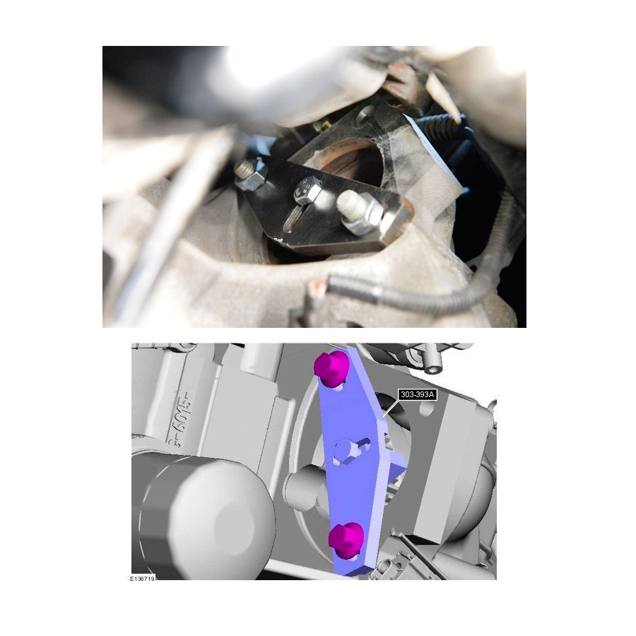 Фиксатор маховика коленвала Форд 303-393 или 303-393A используется для фиксации венца маховика коленчатого вала на автомобилях FORD как бензиновых, так и дизельных моторов. Например, используется, как фиксатор маховика на Форд Фокус 2 и 3. Крепления фиксатора может осуществляеться вместо стартера двигателя. Специальные приспособления с переходниками может применяться для двигателей VOLVO.