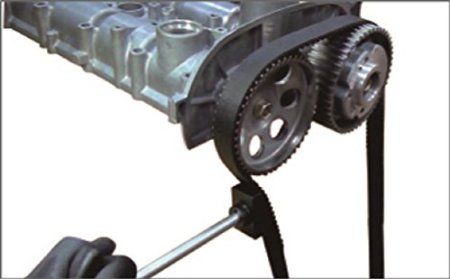 Инструмент T10487 для обсаживания ремня ГРМ перед установкой фиксаторов распредвала. Это необходимо сделать для того, чтобы вставить фиксатор в распределительные валы.