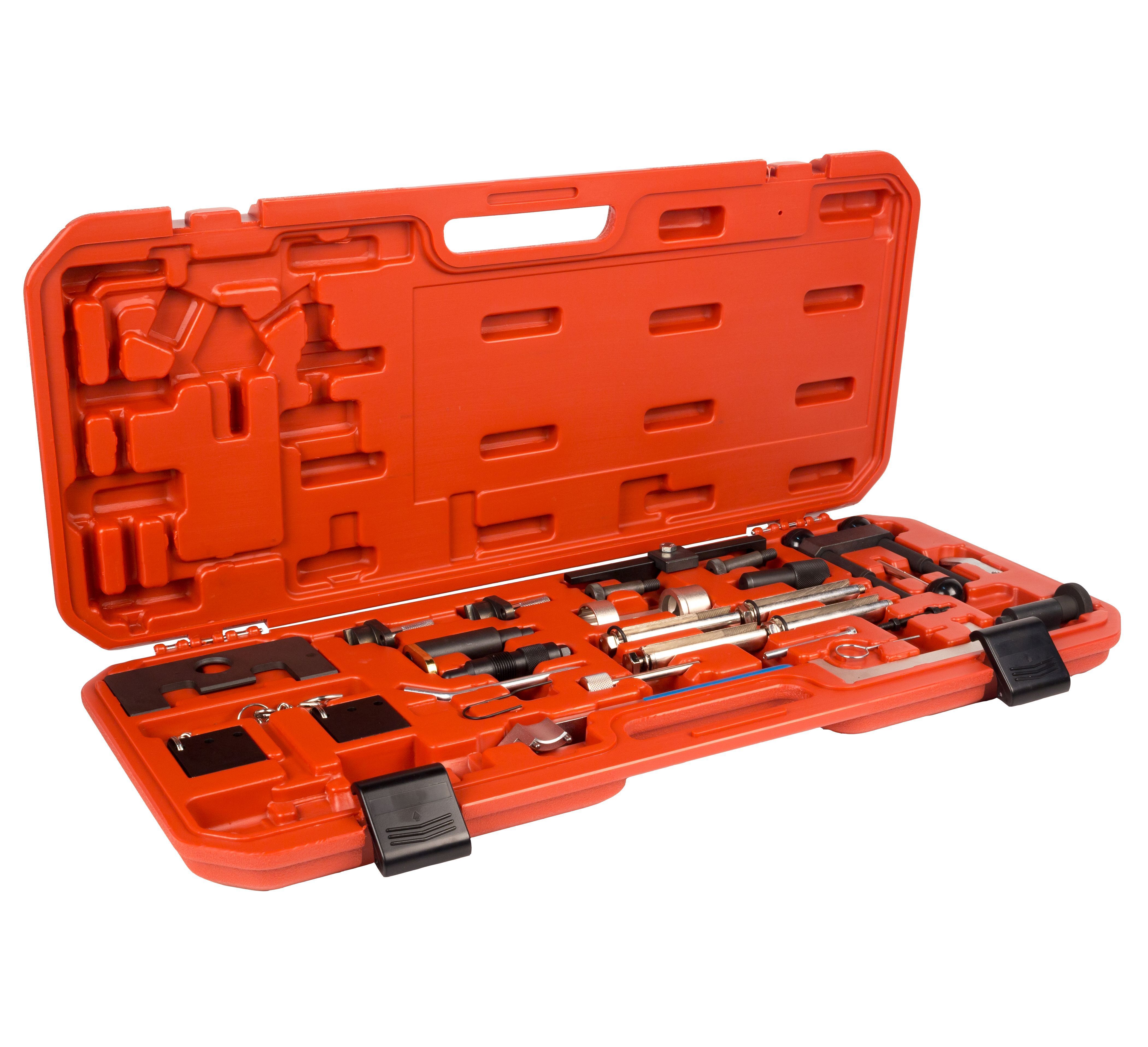 Данный набор применяется для бензиновых и дизельных двигателей группы VAG. Необходим для замены привода ГРМ и установки фаз ГРМ.