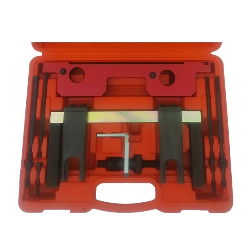 Комплексный набор инструментов включает в себя фиксатор распредвалов N55 11 4 280 и шаблон 11 4 290 для регулировки системы Vanos, а также другие инструменты необходимые для настройки фаз ГРМ, VANOS и для замены цепи ГРМ на 6-ти цилиндровых двигателях BMW с двигателями N55. N55 - шестицилиндровый двигатель с двумя верхними распредвалами, непосредственным впрыском и турбонаддувом.