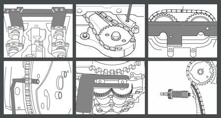 Специальный набор инструментов используется для проверки и настройки фаз ГРМ, необходим для замены цепи ГРМ и для правильной установки VANOS. Применим на 4-ех цилиндровые двигатели BMW с двумя распредвалами и рабочим объемом 1,6/2,0 литра HPI.
