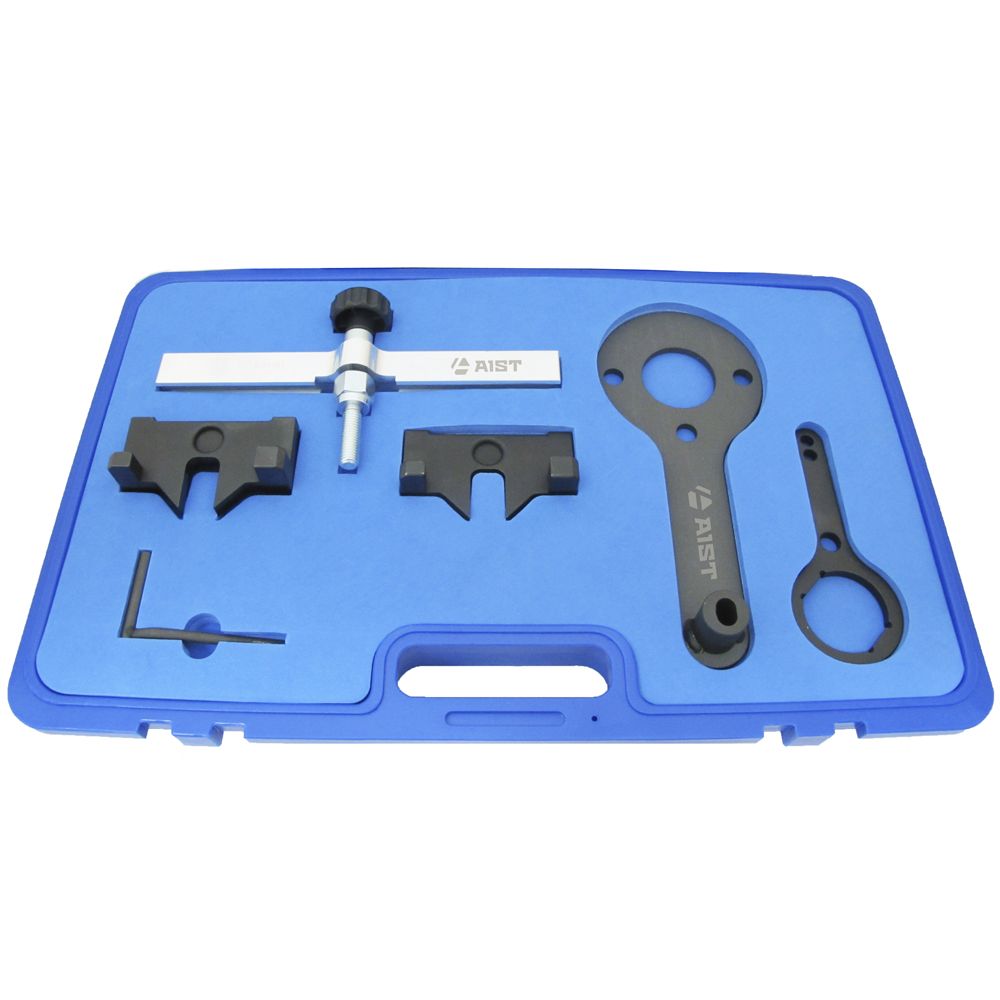 Набор фиксаторов грм BMW для N63 используется для фиксации распределительного и коленчатого валов при ремонте двигателя и настройке системы газораспределения на двигателях BMW N63/S63/N74 и для cинхронизации VANOS. BMW N63 - это двигатель с турбонаддувом DOHC V8, который выпускается с 2008 года по настоящее время. S63 - это подразделение BMW N63, дебютировавшее в BMW X6M. В набор входит два приспособления для распредвалов для фиксации их в положение ВМТ во время сборки. Штифт коленчатого вала ВМТ для выравнивания маховика в положении ВМТ. Инструменты синхронизации VANOS: три прибора, необходимые для синхронизации системы VANOS.