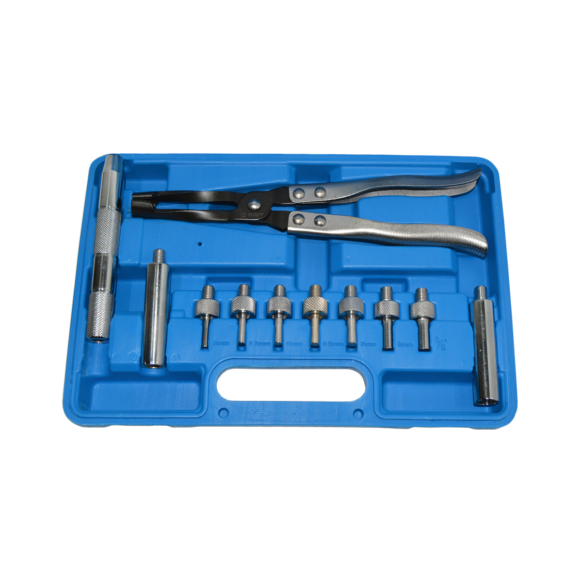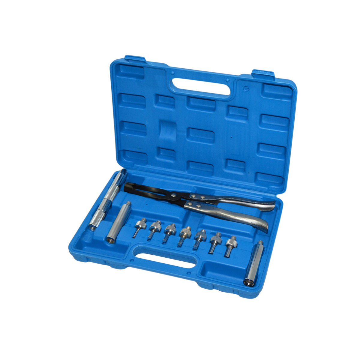 Набор инструмента для замены маслосъемных колпачков представляет собой комплект инструмента для снятия и установки маслосъемных колпачков от 10.8 до 14.8 мм и направляющих. Набор для снятия маслосъемных колпачков позволяет быстро произвести демонтаж маслосъемных колпачков различных диаметров.