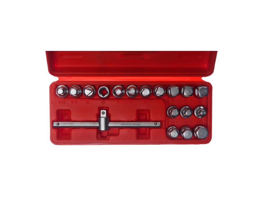 Набор квадратов (головок) для сливных (масляных) пробок 18 предметов