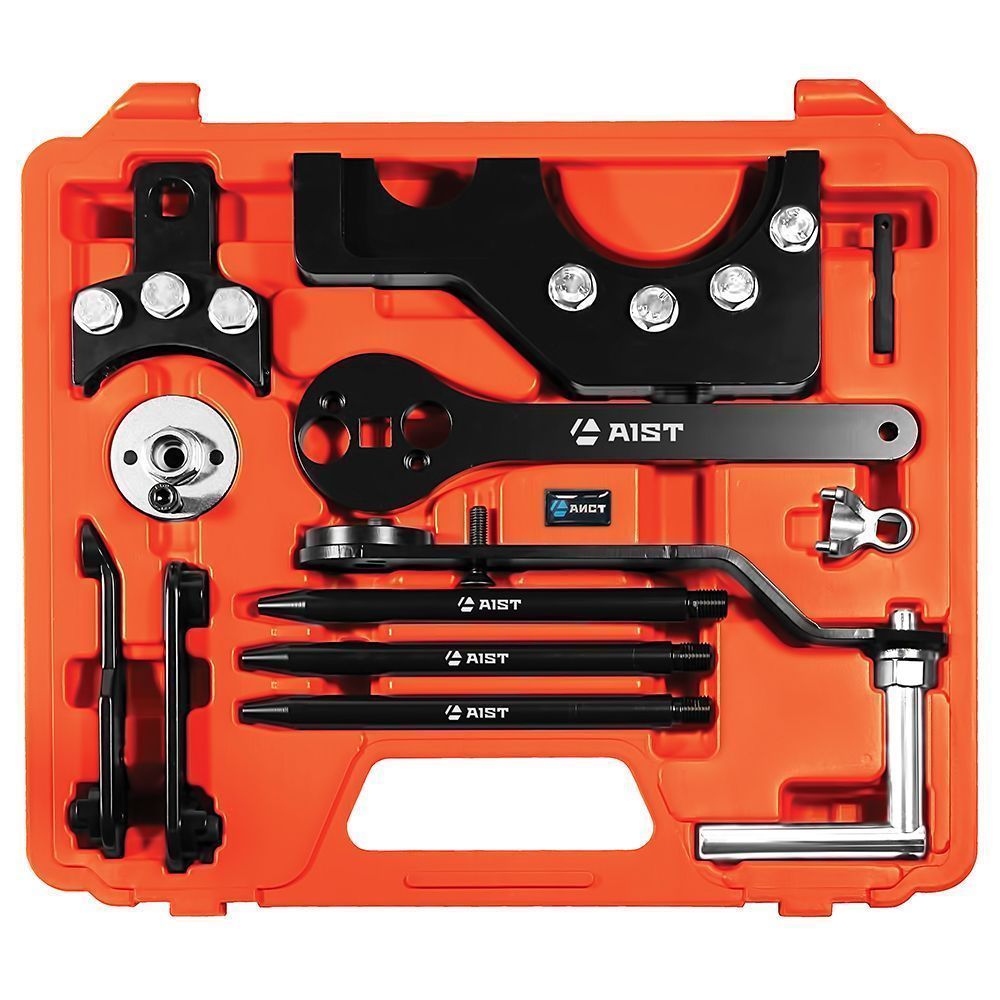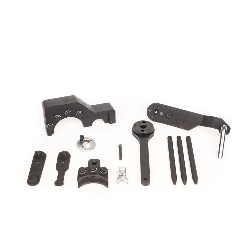 Набор инструмента необходим для установки фаз ГРМ и для замены привода ГРМ в автомобилях VAG с дизельными двигателями 2.5/4.9 TDI PD. Данный полный набор предназначен не только для регулировки шестеренчатого механизма ГРМ дизельных двигателей, а также для установки компенсационной шестерни механизма ТНВД. Используется для монтажа/демотажа приводной шестерни распредвала и устранения люфтов в зубчатых механизмах. Применим для установки шестерен зубчатой передачи распределительных валов 10-ти цилиндровых двигателей TDI.