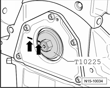 - Сервисный ключ для доворота коленчатого вала в положение ВМТ. Номер: VAG T10225;