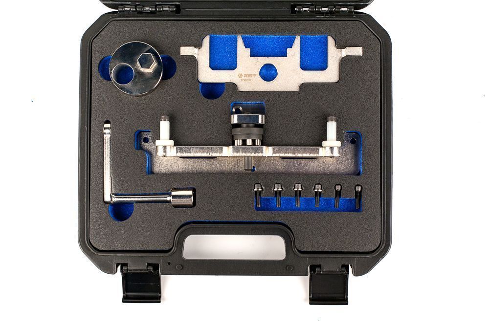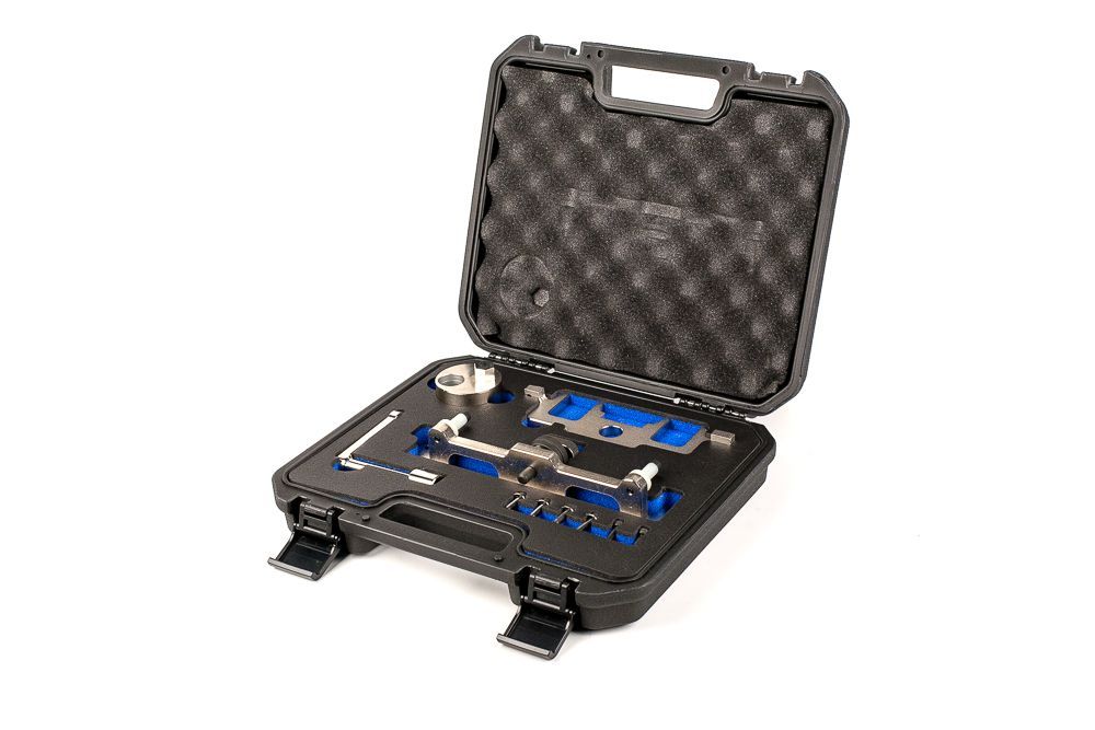 Данный набор включает в себя все инструменты необходимые для замены цепи и шестерни распределительного вала двигателя Mercedes-Benz OM651, а также точного позиционирования расрпеделительных валов при сборке двигателя ОМ 651 или при замене цепи ГРМ.