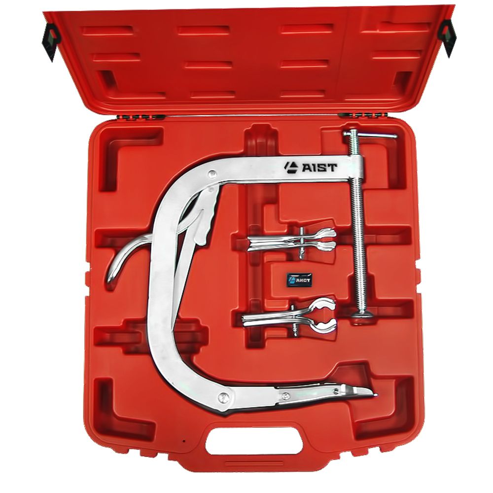 Приспособление для рассухаривания клапанов используется при замене клапанов или во время других операции, связанных с извлечением клапанов из головки блока цилиндров. Струбцинный съемник для сжатия пружин клапанов применяется на многоклапанных дизельных двигателях c L-образной ГБЦ. Рассухариватель универсальный струбцина С-образный для снятия пружин клапанов. Для улучшения фиксации поставляется со сменными захватами (прямыми и изогнутыми).