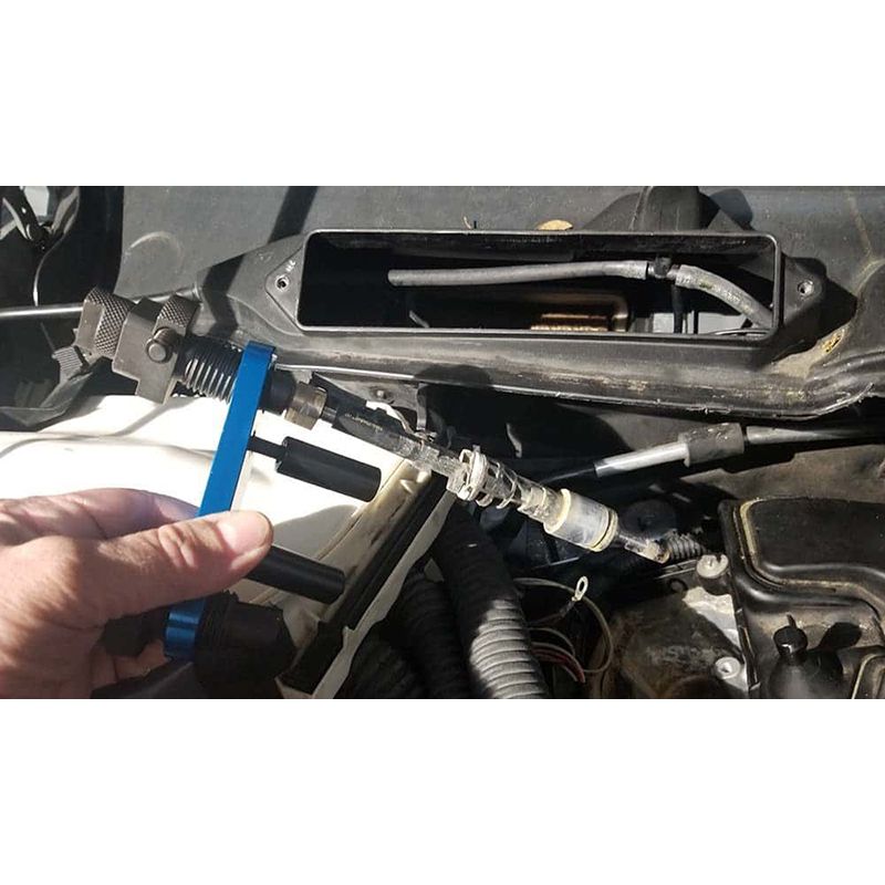 Съемник предназначен для снятия и установки топливных форсунок с непосредственном впруском на двигателе BMW N55.  N55 - двигатель с турбонаддувом V6, выпускаемый с 2009 года по настоящее время, с двумя VANOS,  системой Valvetronic и прямым впруском топлива.