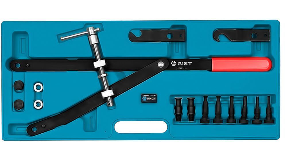 Применение инструмента для фиксации шкивов в наборе 15 предметов: