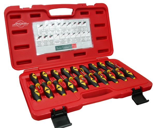 Набор распиновщиков для разъединения электроконтактов состоит из 19 предметов. Набор для разборки пинов поставляется в кейсе.
