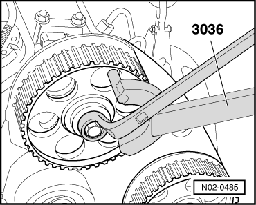 Ключ VAG 3036 используется для блокировки вращения (контрупор) шестерни распредвала во время замены ремня грм, настройки фаз ГРМ или при откручивании центрального болта шестерени распредвала на различных двигателях VW/AUDI/SEAT/SKODA. Также применим для 6-цилиндровых V-образных двигателей. Пример использования ключа можно увидеть на картинках.