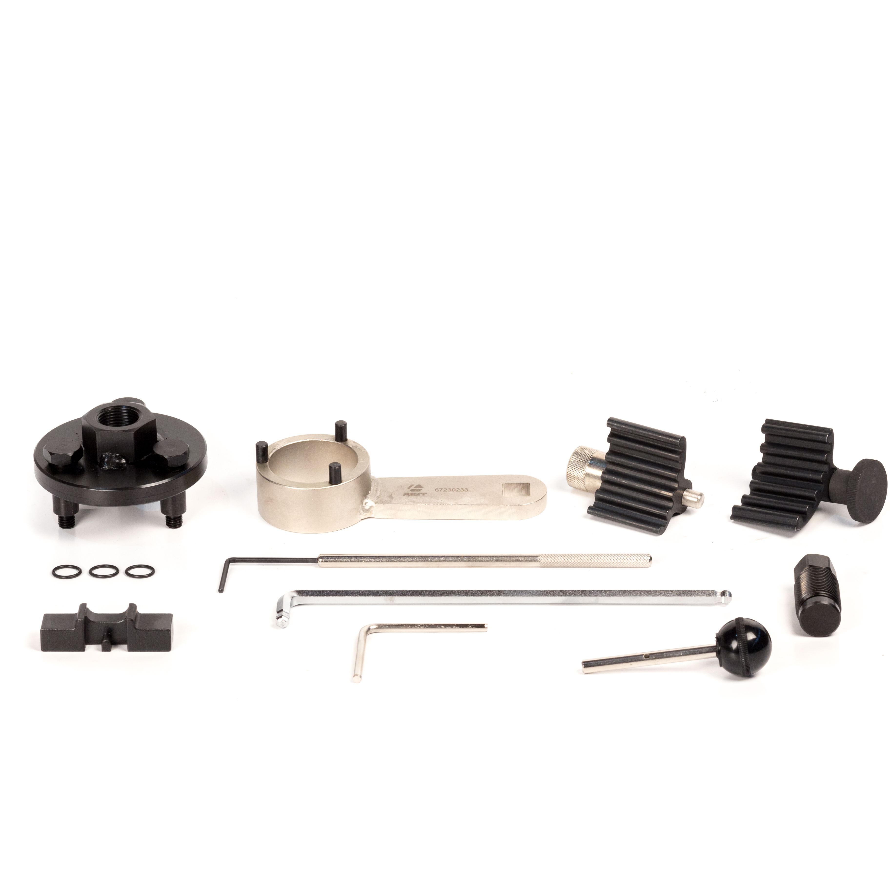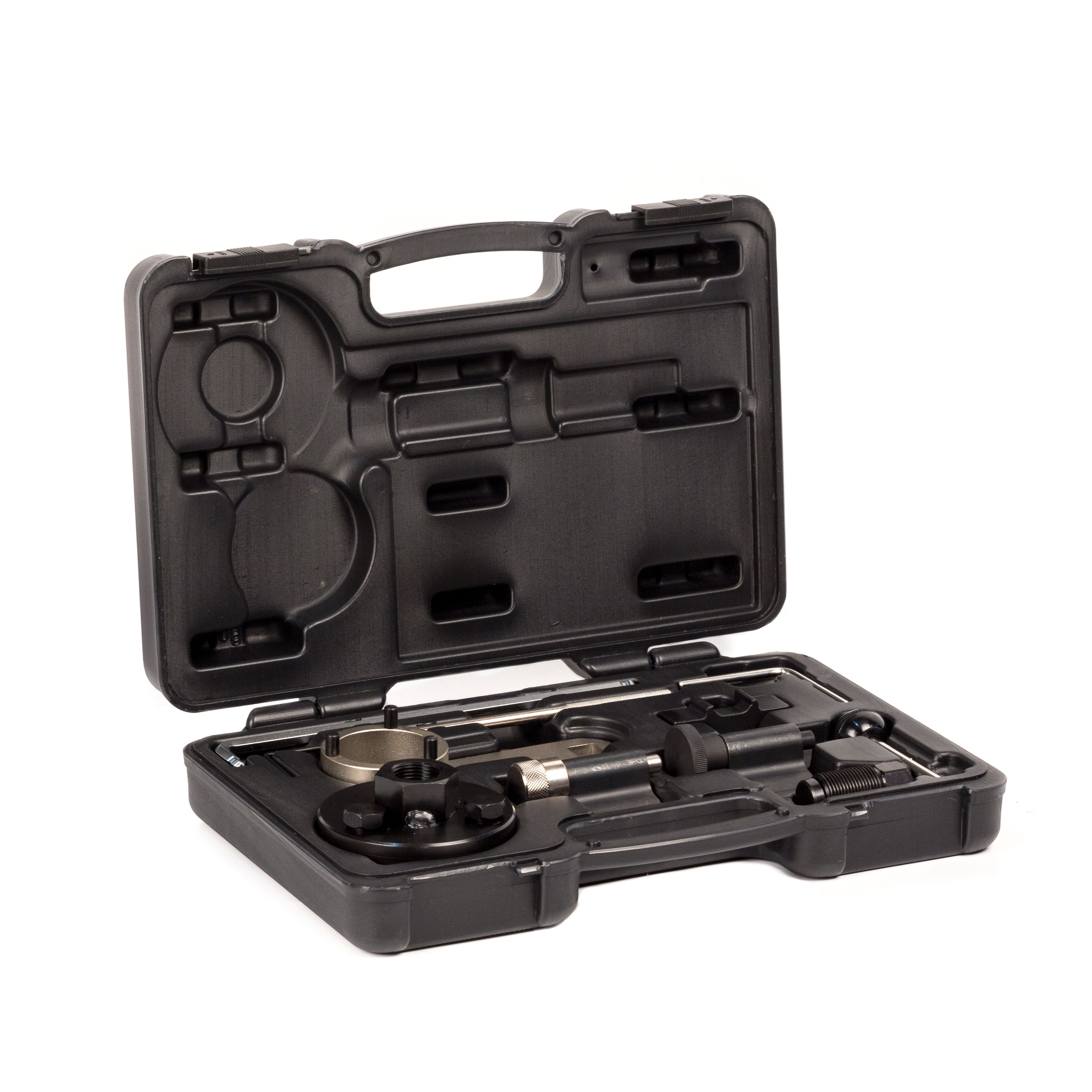 Набор инструментов для установки фаз ГРМ двигателя 5-го поколения "Blue Motion", оснащенного системой Common Rail. Этот комплект был разработан для того, чтобы работать с новейшими дизельными двигателей Common Rail 1.2TDI, 1.6 TDI и 2.0 TDI, которые значительно отличаются от старых PD двигателей. В набор входят различные фиксаторы, включая фиксатор балансирного вала T10255 и съемник шестерни распредвала.