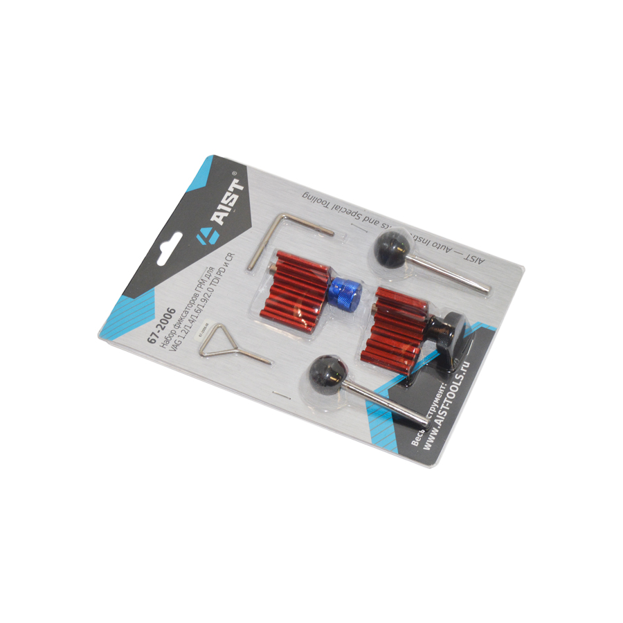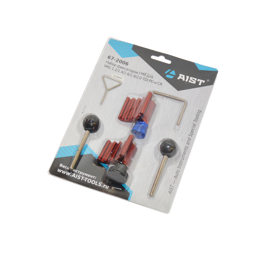 Набор используется для автомобилей VAG группы. Необходим для настройки фаз ГРМ и замены ремня ГРМ на дизельных двигателях с насос-форсунками и системой Common-Rail. Комплект фиксаторов коленвала подходит для двигателей AUDI/VW/SEAT/SKODA с объемом 1.2/1.4/1.9/2.0 TDI PD D SDI и 1.6/2.0 TDI Common-Rail. Один фиксатор коленвала подходит к шестерни с овальными зубцами, а второй фиксатор используется для полукруглых зубцов. Набор фиксаторов подходит к дизельным двигателям, как с одним, так и с двумя распредвалами. На картинках можно увидеть примеры использования фиксаторов на некоторых двигателях. Профессиональный набор фиксаторов ГРМ для VAG 1.2/1.4/1.6/1.9/2.0 TDI PD и CR.