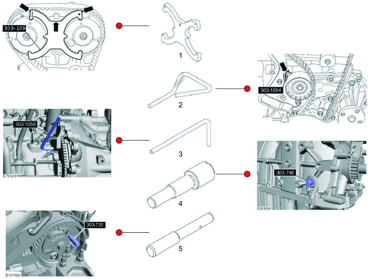 Ford: 1.5/1.6 EcoBoost (для двигателей ecoboost 1.6 при регулировке фаз ГРМ дополнительно нужно приобрести регулировочный инструмент для демпфера вибрации коленчатого вала 303-1550);