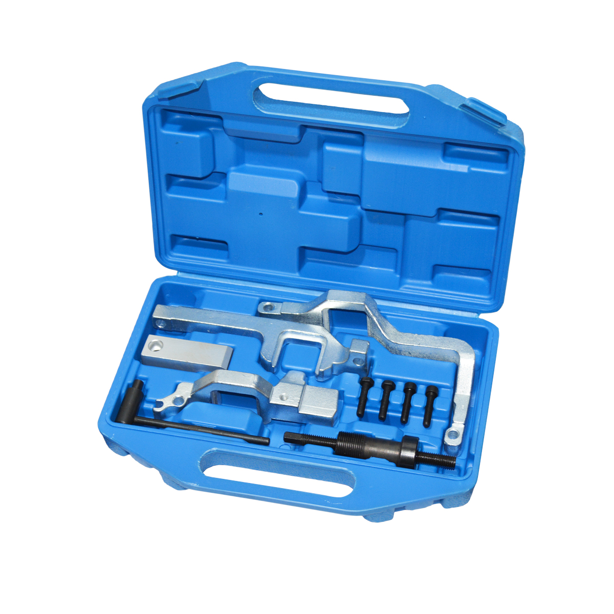 Набор фиксатор распредвалов EP6 и другие предметы предназначены для установки фаз ГРМ, для замены цепи ГРМ и для ремонта бензиновых двигателей с двумя распределительными валами объемом 1.4 и 1.6 и с системой Valvetronic, устанавливающихся на автомобили MINI COOPER, Citroen (Ситроен) и Peugeot (Пежо). Например, инструмент используется как фиксатор распредвалов Пежо 308 1.6 EP6. Набор фиксаторов для бензиновых двигателей PSA, MINI N12, N14, N16 поставляется в кейсе. Ниже представлено применение набора фиксаторов распредвала ЕР6. Профессиональный набор инструментов EP6.