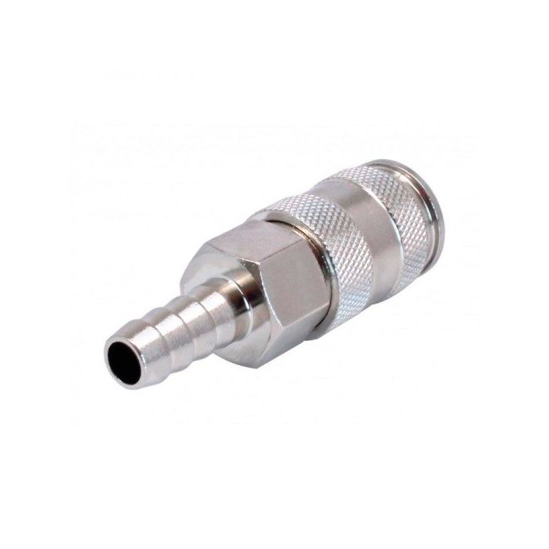 Быстросъемное соединение для воздуха "мама"-"елочка" 1/2" (12 мм) используется для соединения пневмоинструмента, шлангов и компрессорного оборудования. Быстроразъемное соединение для пневматики с обратным клапаном изготовлено никелированной латуни.