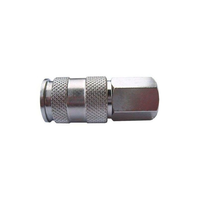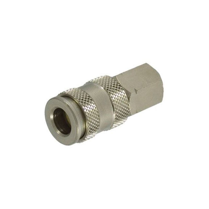 Быстросъемное соединение для воздуха "мама"-"внутр. резьба" 1/2" используется для соединения пневмоинструмента, шлангов и компрессорного оборудования. Быстроразъемное соединение для пневматики с обратным клапаном изготовлено никелированной латуни.