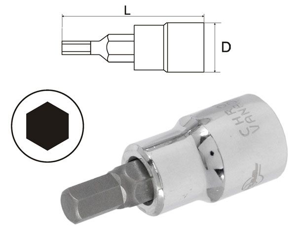 Головка-бита шестигранная 5мм 1/2" сатиновая