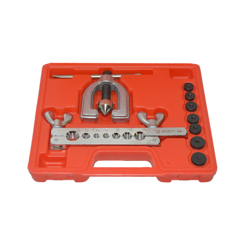 Развальцовщик трубок используется для односторонней и двусторонней развальцовки. Развальцовщик для дюймовых и метрических трубок. Например, данный набор применяется для развальцовки медных тормозных трубок автомобиля, трубок кондиционера и других трубок, изготовленных из мягких металлов.