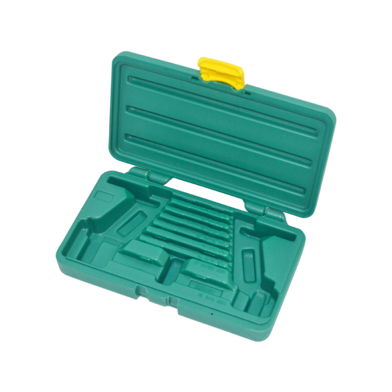 Пустой кейс бокс для гаечных комбинированных ключей на 8 пердметов. Чемодан для гаечных ключей подойдет для хранения типовых размеров ключей от 8 до 19 мм. Каждый отсек бокса органайзера пронумерован под конкретный ключ.