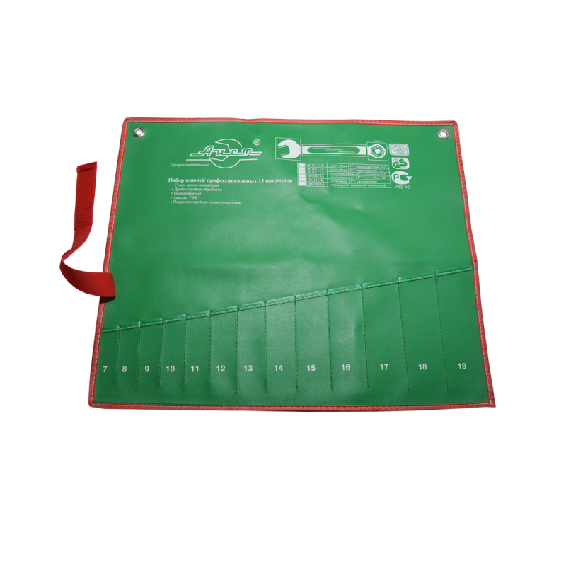 Сумка чехол для гаечных комбинированных ключей на 13 предметов. Скрутка для гаечных ключей подойдет для хранения типовых размеров ключей от 7 до 19 мм. Каждый отсек сумки органайзера пронумерован.