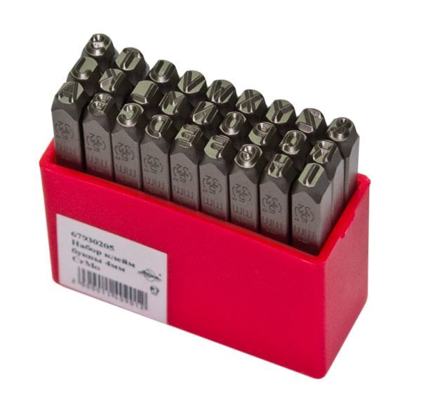 - для нанесения на поверхности из металлов штампы в виде букв;
