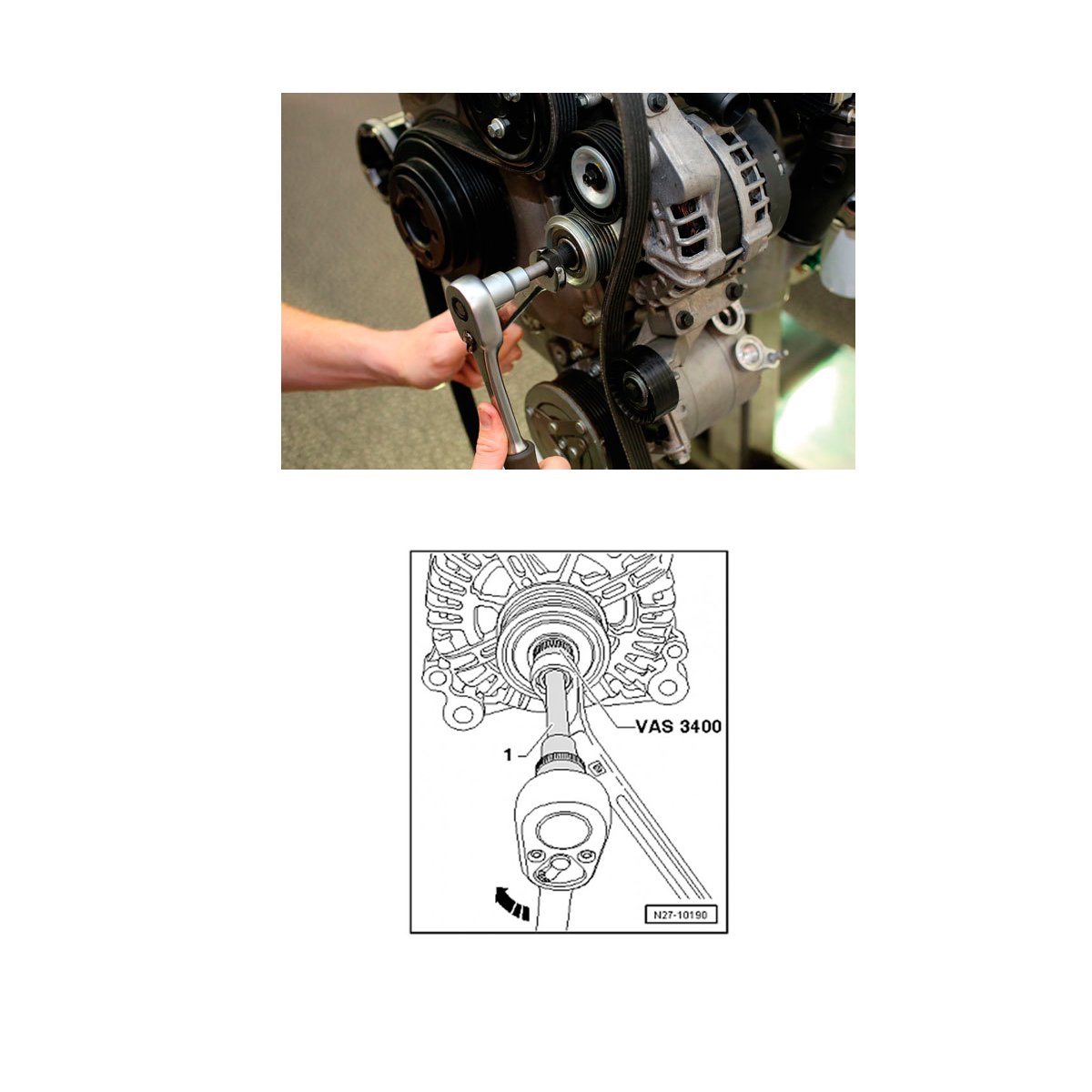 - для монтажа шкива со свободным ходом при замене генератора или шкива.