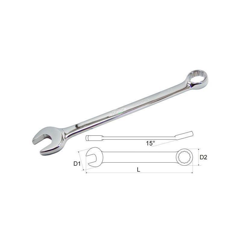 С одной стороны комбинированный ключ 13 мм имеет рожковый профиль, а с другой двенадцатигранный накидной. Использование двух одноразмерных профилей делает инструмент универсальным для работы с крепежом.
