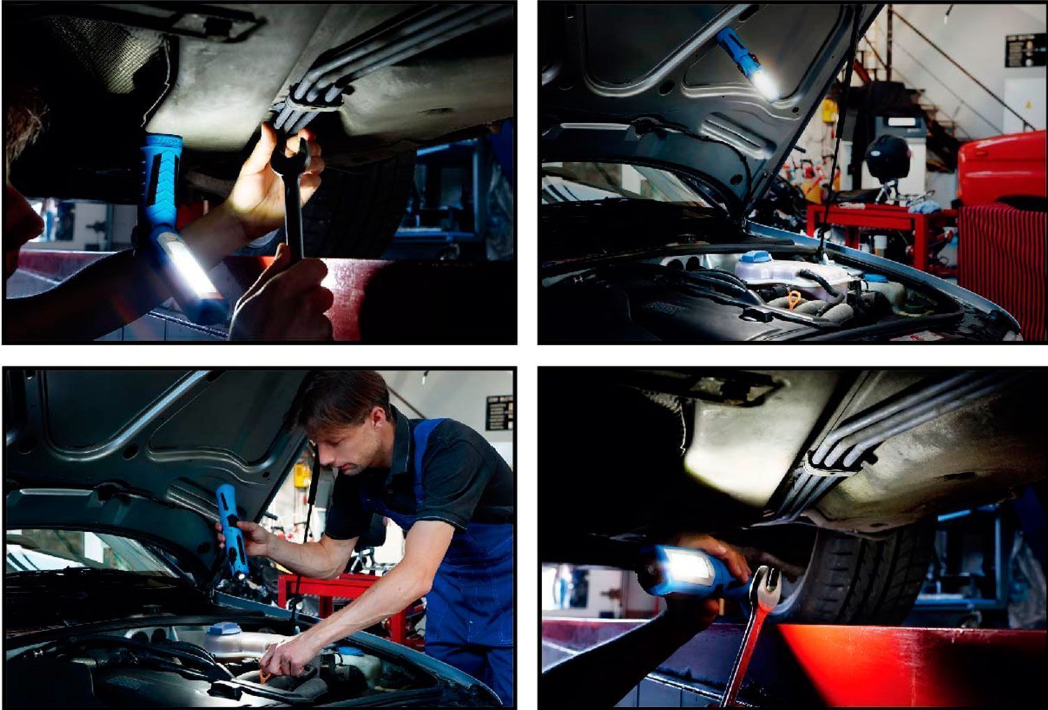 - За счет магнита и крюка, изгибающегося корпуса позволяет работать в труднодоступных, местах не занимая руки;