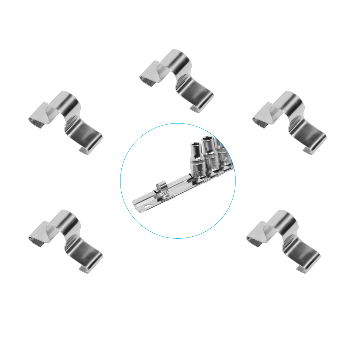 Комплект клипс 5 шт. для головок 1/2" дюйма на планку металлическую. Используются для удобного крепления и хранения торцевых головок 1/2" дюйма на металлической планке.