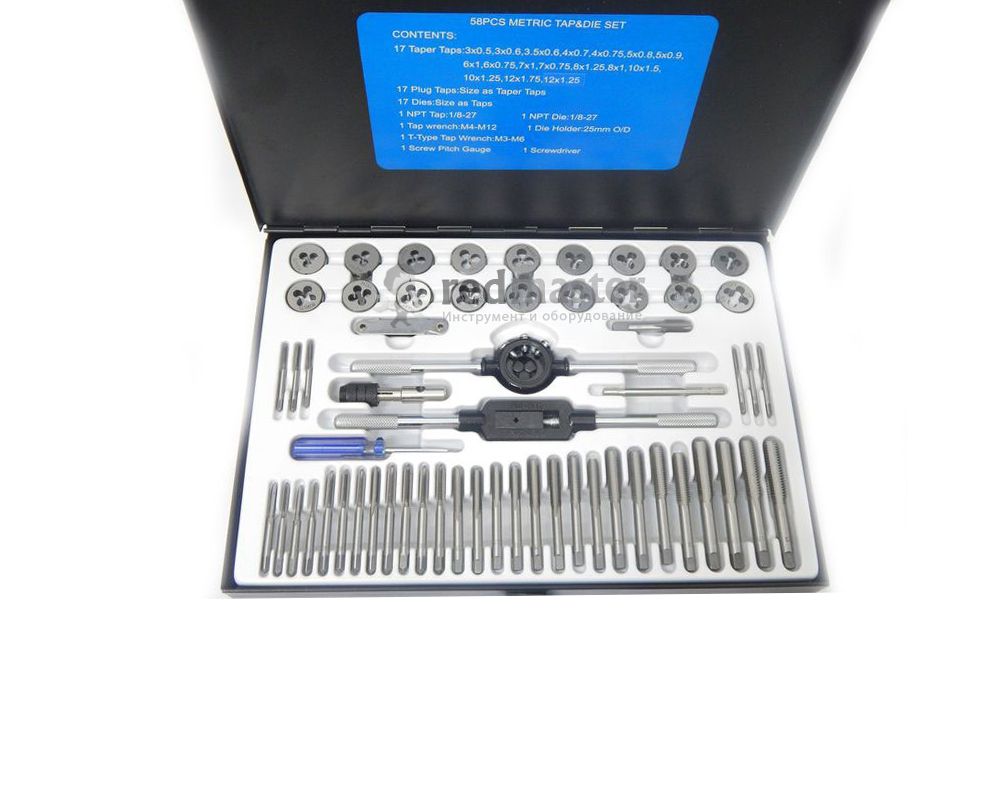 Набор метчиков и плашек (метрич.) 58 предметов