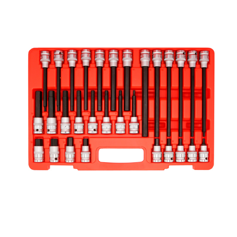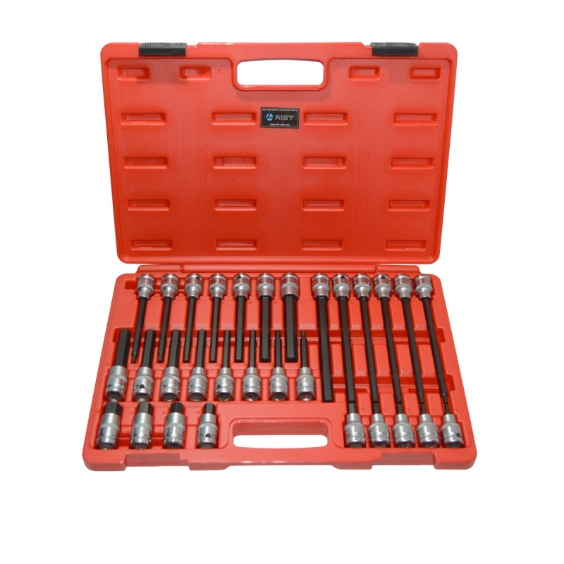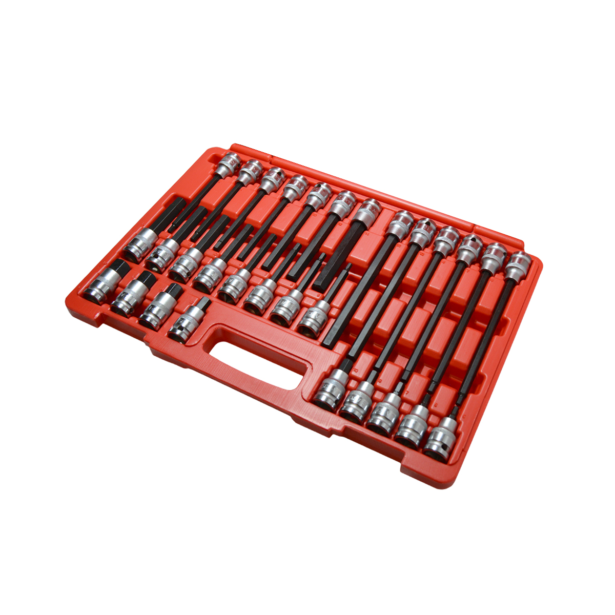 Профессиональный набор торцевых головок-битов(вставок) HEX (6-ти гранных) H5-H19 1/2" 30 предметов в кейсе. Головки-биты шестигранники различной длины: стандартные, удлиненные и экстрадлинные в наборе.