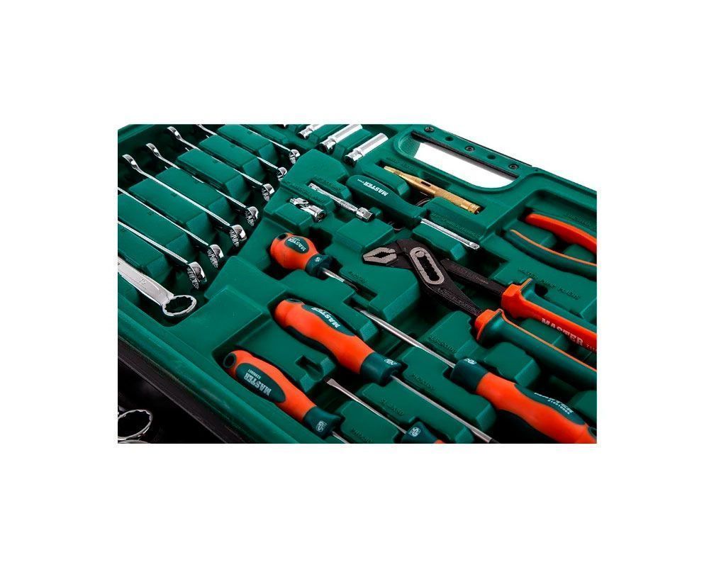 | Комплектация | Трещотка(и), Отвертка-вороток, Вороток Т-образный, Вороток шарнирный, Головка(и), Головка(и) удлиненная, Свечная головка(и), Удлинитель(и), Кардан(ы), Держатель(и) бит, Держатель(и) бит под шуруповерт, Адаптер(ы)-переходник, Биты, Бит-адаптер для головок, Комбинированный ключ(и), Г-образный ключ(и) имбусовый, Отвертка(и), Плоскогубцы, Кусачки боковые (бокорезы), Клещи переставные, Пресс-клещи (кримпер), Молоток, Рукоятка магнитная (захват), Тестер напряжения |