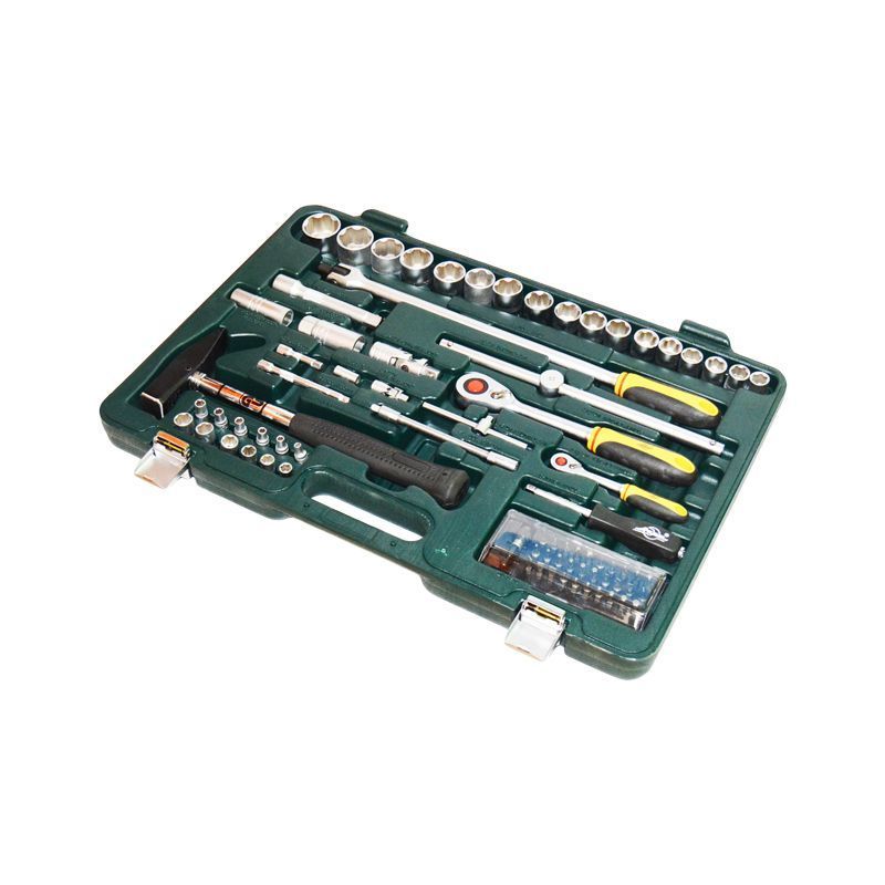 | Комплектация | Трещотка(и), Отвертка-вороток, Вороток Т-образный, Вороток шарнирный, Головка(и), Свечная головка(и), Удлинитель(и), Удлинитель гибкий, Кардан(ы), Держатель(и) бит, Держатель(и) бит под шуруповерт, Биты, Молоток |