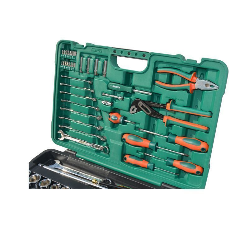 | Комплектация | Трещотка(и), Отвертка-вороток, Вороток Т-образный, Вороток шарнирный, Головка(и), Головка(и) удлиненная, Свечная головка(и), Удлинитель(и), Кардан(ы), Держатель(и) бит, Держатель(и) бит под шуруповерт, Адаптер(ы)-переходник, Биты, Бит-адаптер для головок, Комбинированный ключ(и), Г-образный ключ(и) имбусовый, Плоскогубцы, Кусачки боковые (бокорезы), Клещи переставные, Ручной зажим с фиксатором, Молоток, Рукоятка магнитная (захват) |