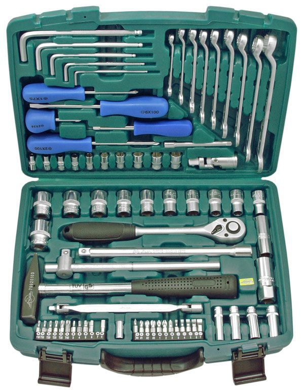 | Комплектация | Трещотка(и), Отвертка-вороток, Вороток Т-образный, Головка(и), Головка(и) удлиненная, Свечная головка(и), Удлинитель(и), Кардан(ы), Держатель(и) бит, Биты, Комбинированный ключ(и), Шарнирный ключ(и), Г-образный ключ(и) имбусовый, Отвертка(и), Молоток |