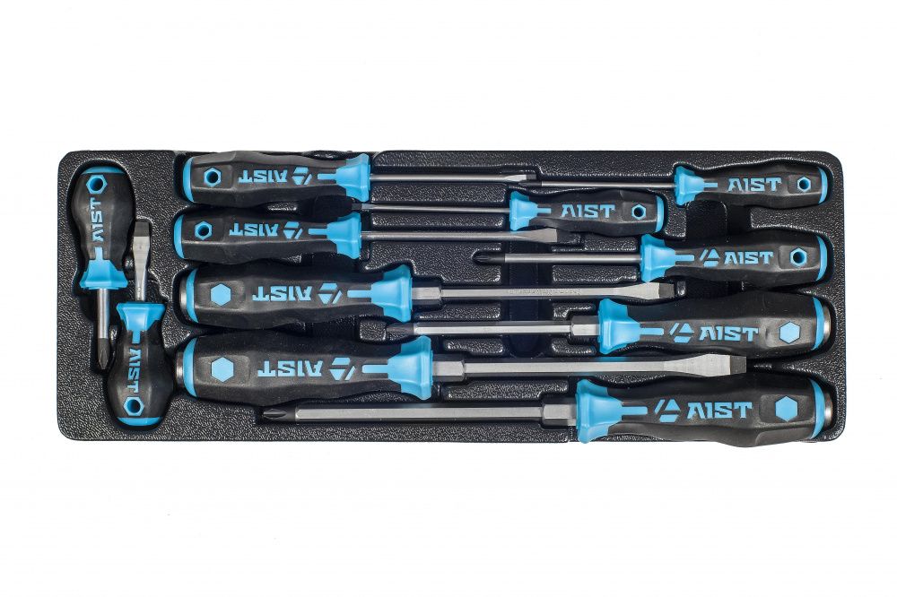 Профессиональный комбинированный набор отверток крестовых и прямых шлицевых (набор отверток PH и SL, включая кабинетные отвертки) включает в себя популярные размеры шлицов. Отвертки имеют двухкомпонентную маслобензостойкую эргономичную рукоять. Набор отверток поставляется в ложементе для комплектации инструментальной тележки, слесарного верстака или ящика. Набор включает 4-ре силовые ударные отвертки под ключ с 6-гранным стержнем.