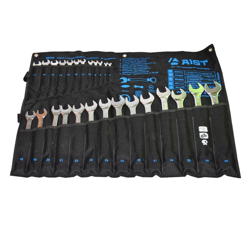 Профессиональный набор рожково-накидных гаечных ключей размером от 6 до 32 мм 26 шт. используется для работы с резьбовыми соединениями указанного размера. Применяется в сфере ремонта различной техники. Подойдет для использования, как набор гаечных ключей для автомобиля.