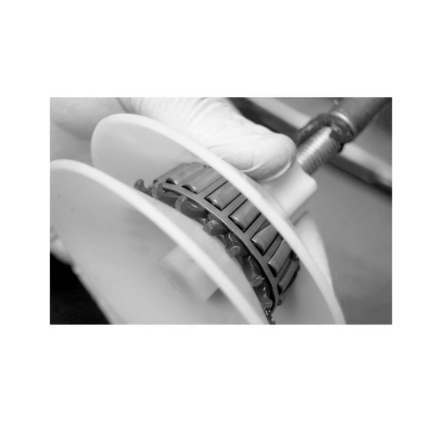Адаптер для смазки подшипников позволяет набить подшипники смазкой, обеспечивая равномерную набивку. Приспособление применяется для заполнения подшипника смазкой под давлением щприца. Установите подшипник на нижний конус, закрутите крышку конуса и закачайте смазку в ниппель. Подходит для использования со смазочными шприцами. Пресс насадка для смазки подшипников изготовлена из стали.