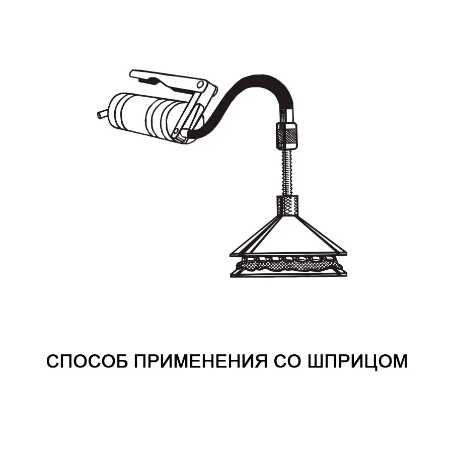 2. Приспособление подсоединятеся к ручному или пневматическому шприцу;