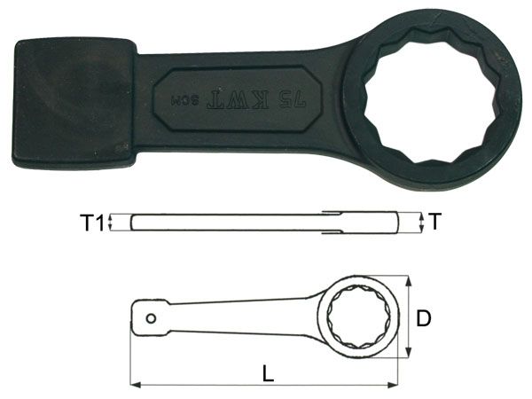 Ключ гаечный ударный накидной 60 мм - односторонний ручной инструмент, который с одной стороны оканчивается рабочим кольцевым 12-гранным профилем, а с другой - наковальней под ударное воздействие. Ключ накидной односторонний ударный 60мм используется вместе с ударным инструментом, например, с молотком или кувалдой, позволяя работать с экстремально нагруженным и крайне осложненным крепежом больших размеров, а также востребован при демонтаже закисших/прикипевших резьбовых соединений.