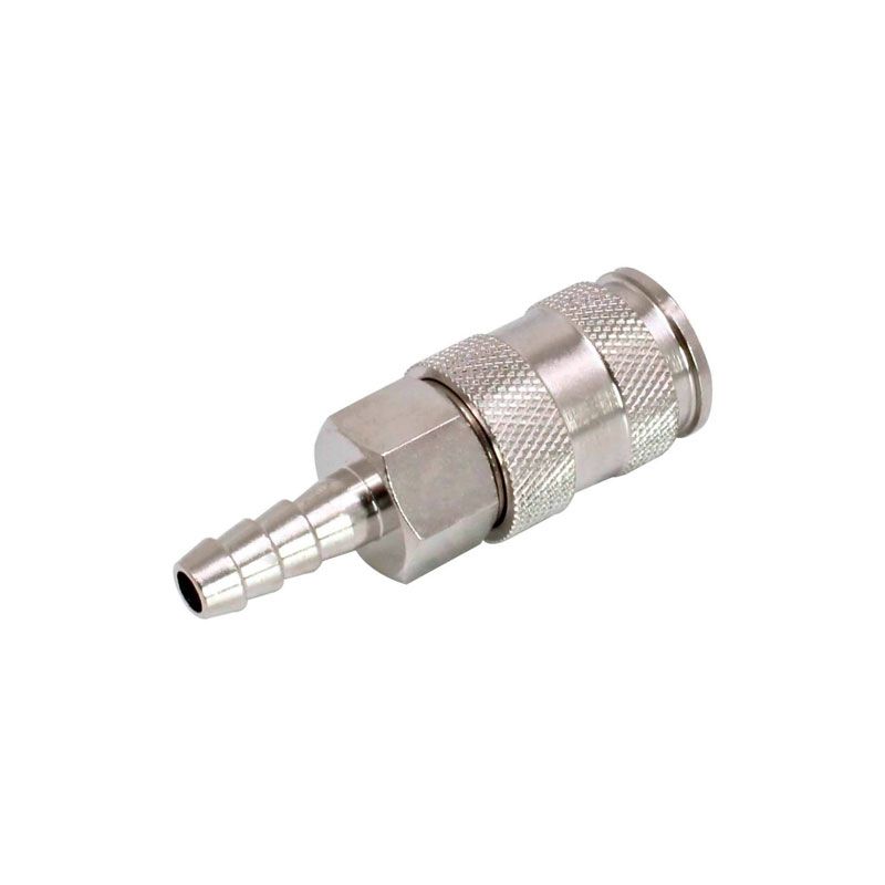 Быстросъемное соединение для воздуха "мама"-"елочка" 5/16" (8 мм) используется для соединения пневмоинструмента, шлангов и компрессорного оборудования. Быстроразъемное соединение для пневматики с обратным клапаном изготовлено никелированной латуни.