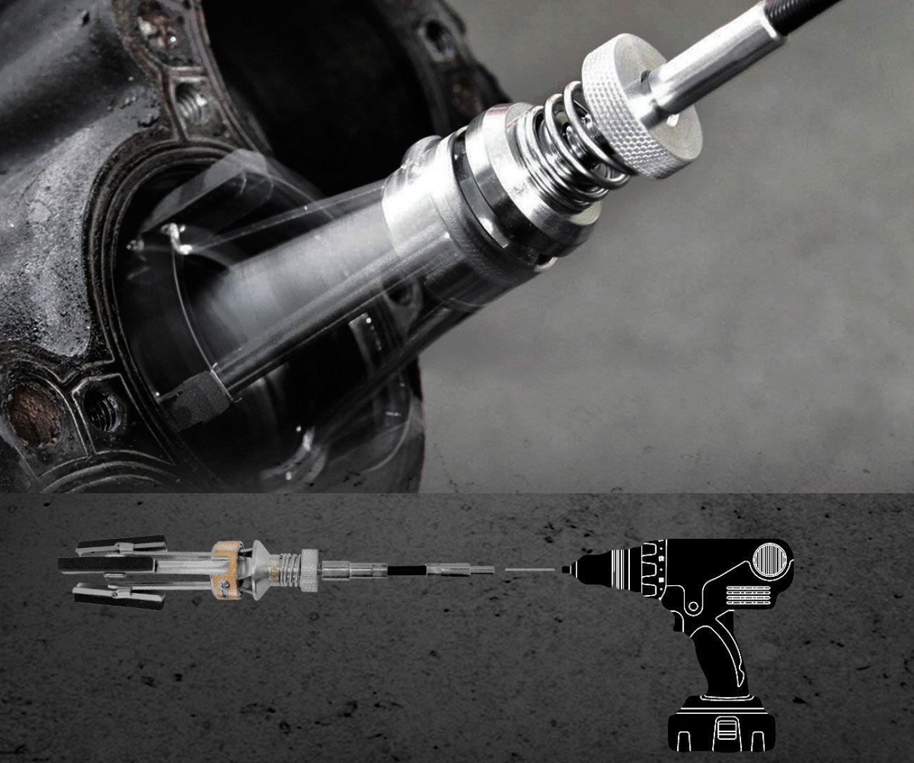 - хон головка для дрели при финишной обработки внутренней поверхности цилиндра.