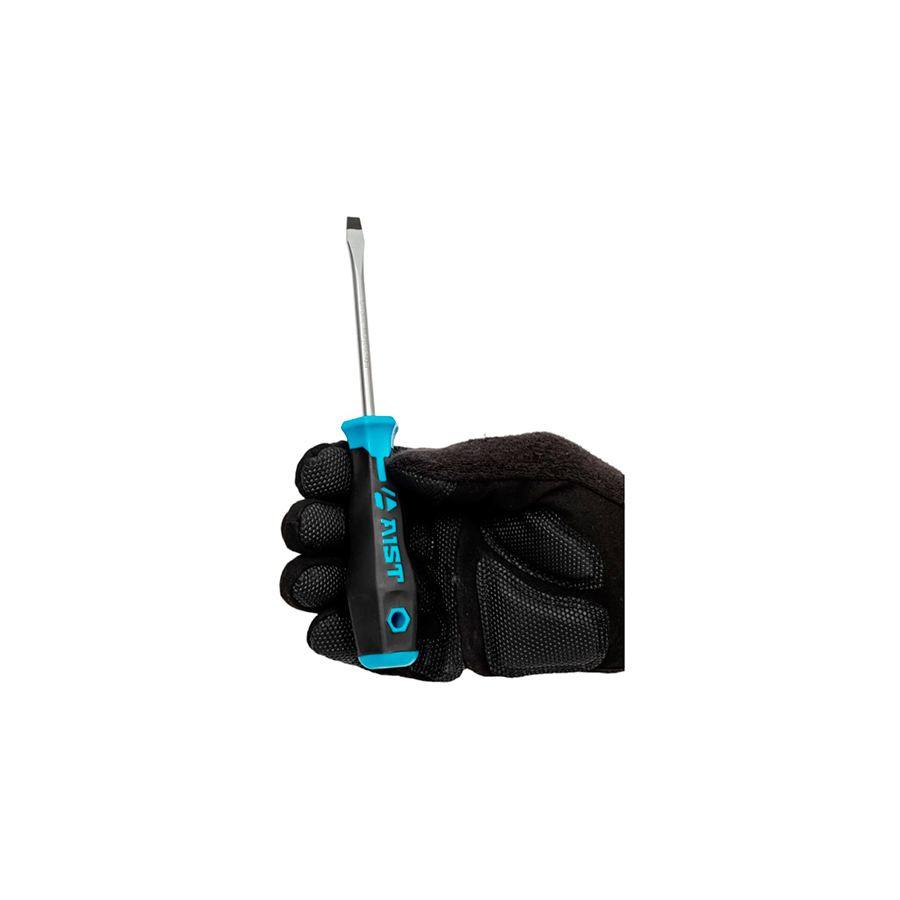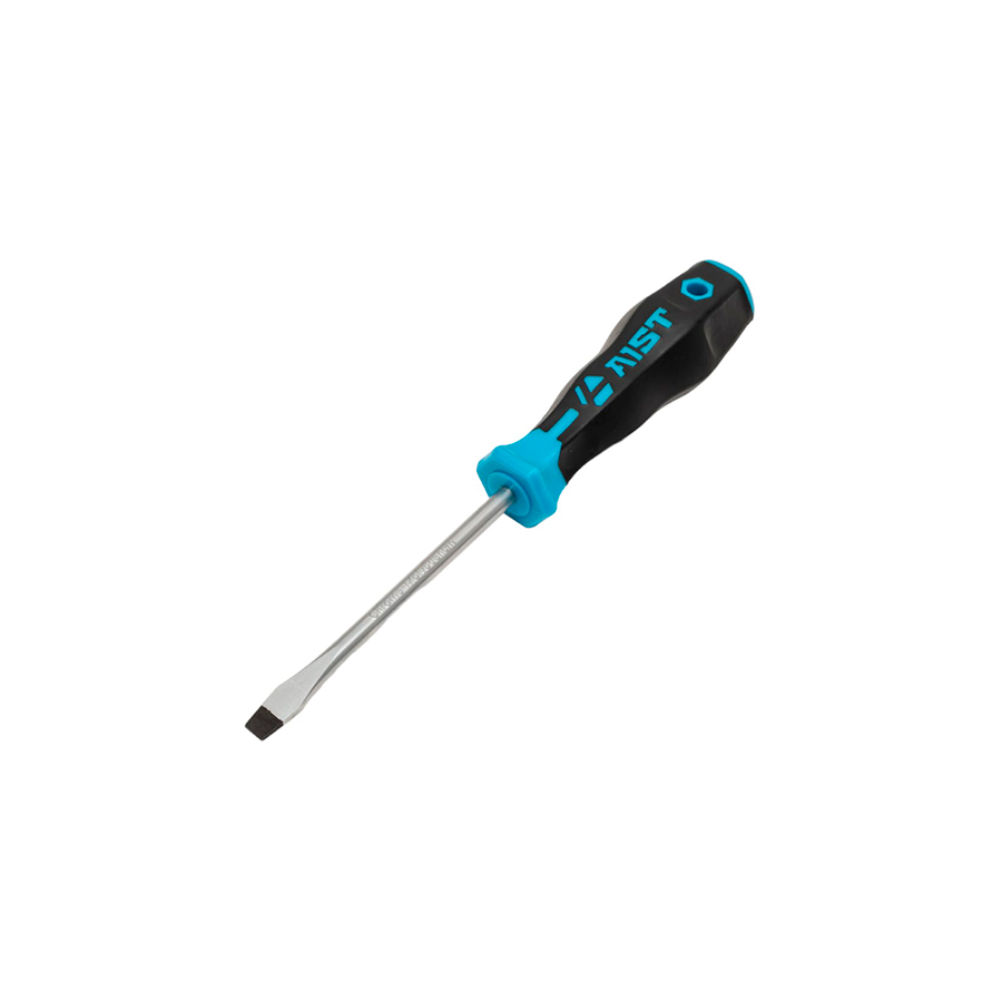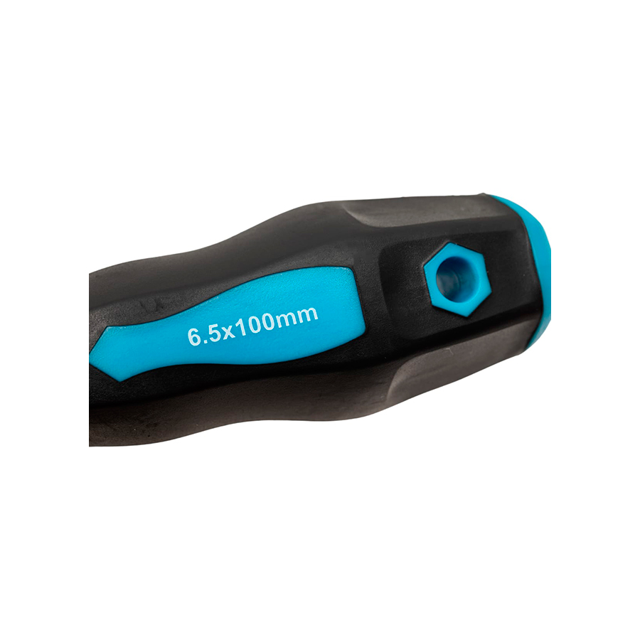 Профессиональная шлицевая плоская (минусовая) отвертка. Шлиц: плоский SL (SLOTTED) размер SL6.5 со стержнем 100 мм. Отвертка плоская SL6.5x100мм имеет намагниченный наконечник и двухкомпонентную маслобензостойкую рукоятку. Отверстие в рукоятке используется для хранения отвертки 6.5х100 мм на крючке. Отвертка SL 6.5мм предназначена для работы с крепежом с внутренним профилем SLOTTED (плоский шлиц).