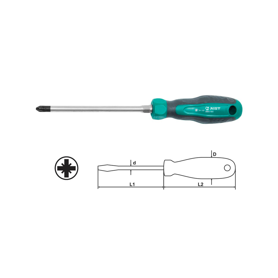 Отвертка крестовая PZ2 100мм силовая под ключ